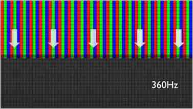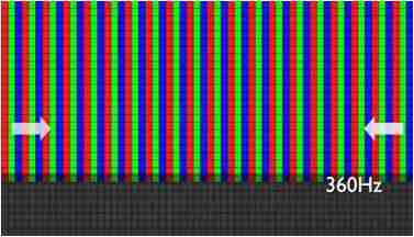 传统液晶驱动是从左到右单向进行,,在画面更新速度愈来越愈快的情况下,,位于驱动线路末端的右下角区域,,,画素的闸极来不及在短时间内获得足够电压,,,,无法显示出正确的颜色资讯。。。 |